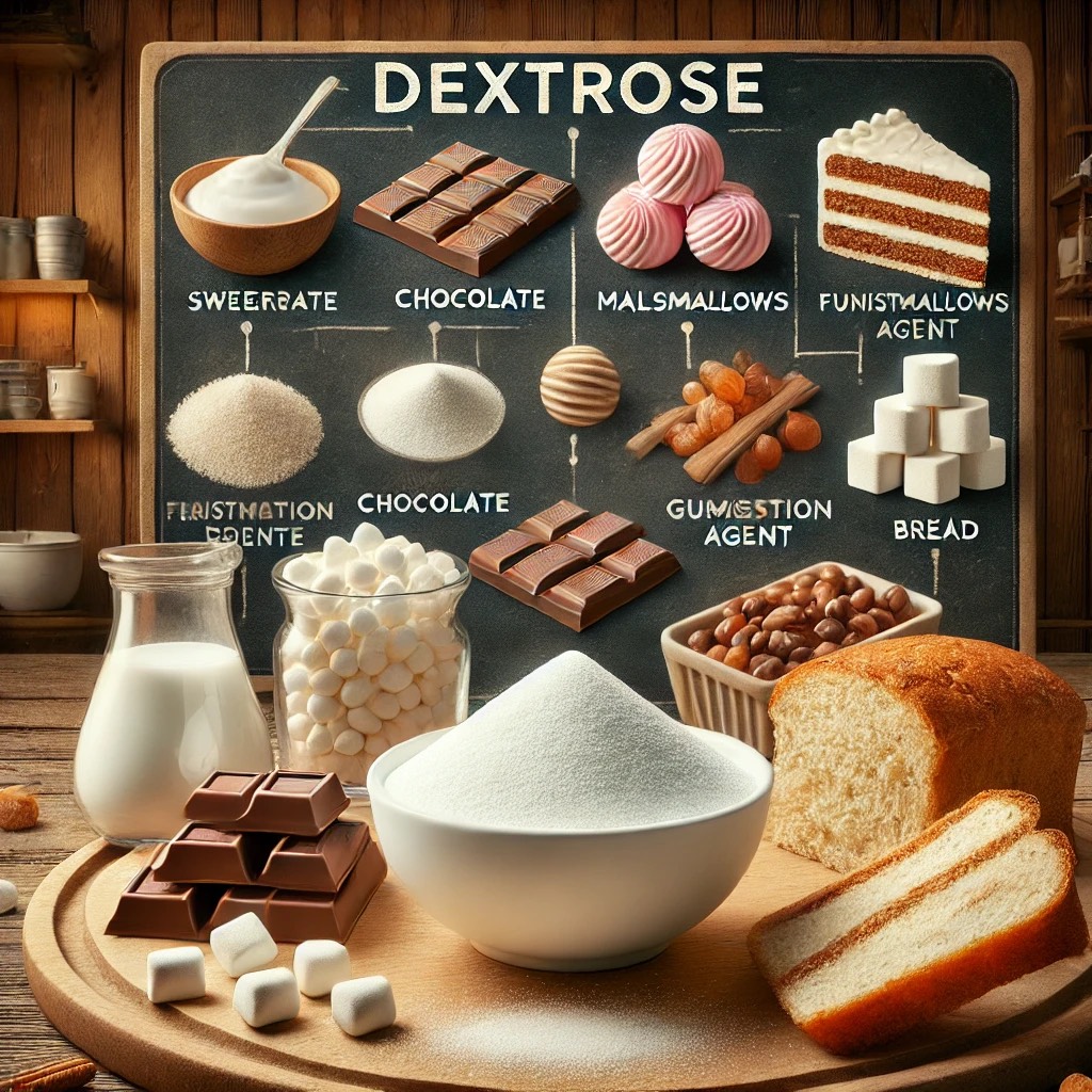 Dekstroz, pastacılık, çikolata ve şekerleme sektöründe önemli bir bileşendir. Tatlılık oranını ayarlamak, nemi korumak ve fermantasyonu desteklemek için kullanılır. Ayrıca, dondurma ve şekerlemelerde pürüzsüz yapı sağlamak için de tercih edilir.